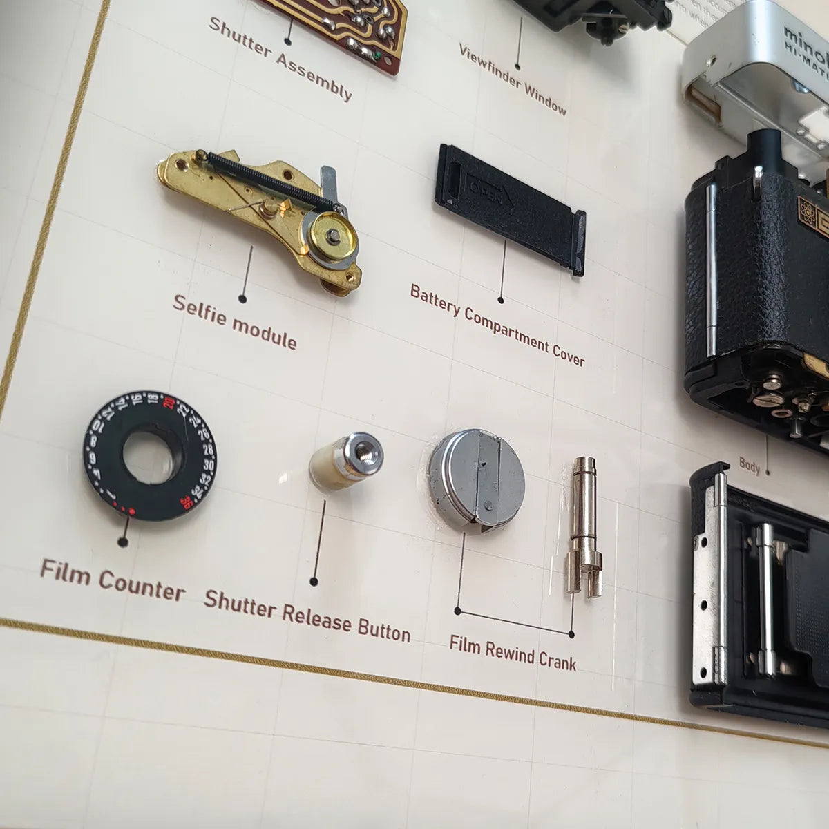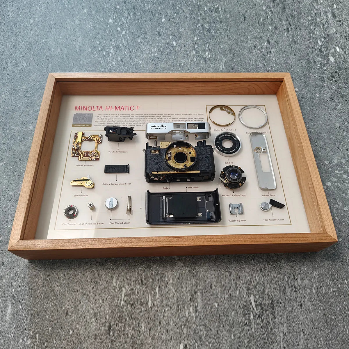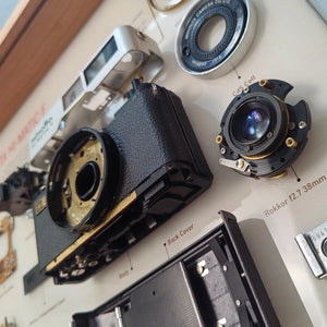 This is a unique, handcrafted piece of vintage camera art. We believe that even when old cameras can no longer take pictures, their internal mechanical aesthetics deserve to be admired. We take an authentic vintage camera, fully disassemble it, and then redesign and lay out its most fascinating components, permanently framing them into a tangible piece of industrial art. It serves as both a stylish piece of wall art and a unique gift for photography lovers or geek friends.