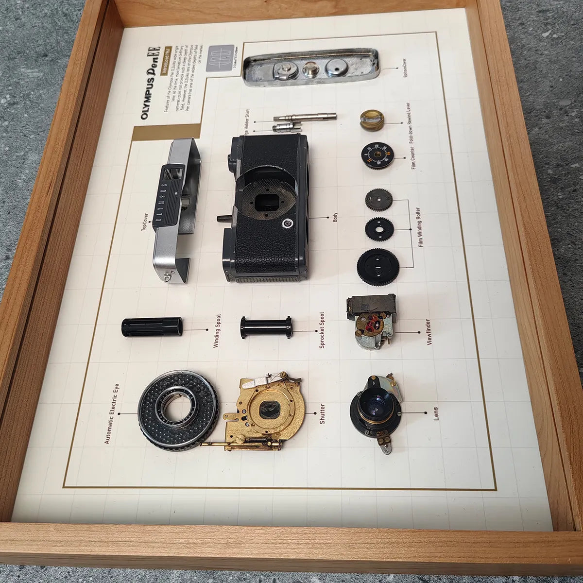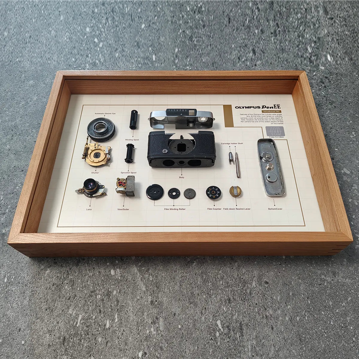 This is a unique, handcrafted piece of vintage camera art. We believe that even when old cameras can no longer take pictures, their internal mechanical aesthetics deserve to be admired. We take an authentic vintage camera, fully disassemble it, and then redesign and lay out its most fascinating components, permanently framing them into a tangible piece of industrial art. It serves as both a stylish piece of wall art and a unique gift for photography lovers or geek friends.